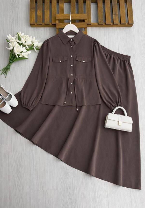 KOLN BELİ TÜNEL BAĞLAMALI CEP KAPAKLI KİLOŞ ETEKLİ TAKIM B10-2-1726-37-KAHVE