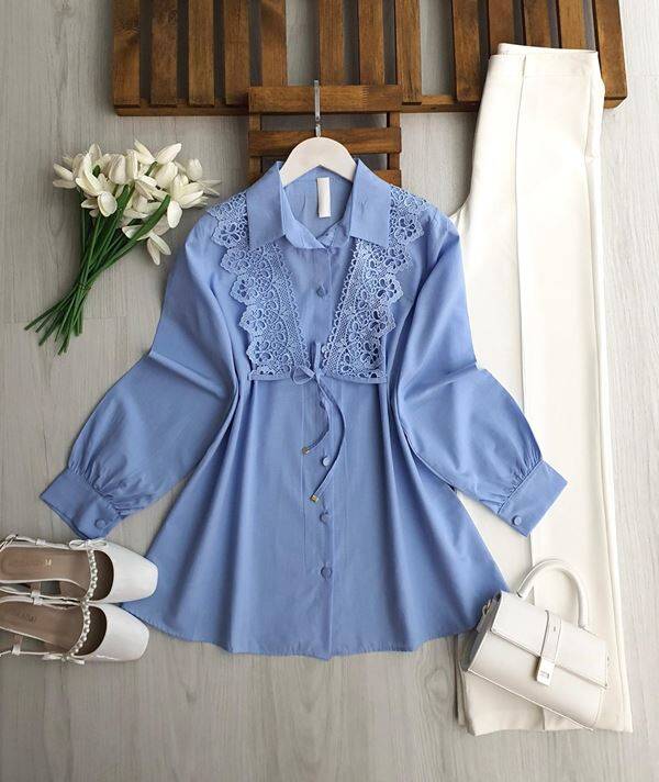 KOVG BAĞCIKLI GÜPÜRLÜ GÖMLEK TUNİK B3-2-5732-10-MAVİ