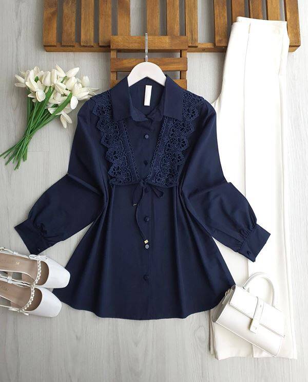 KOVG BAĞCIKLI GÜPÜRLÜ GÖMLEK TUNİK B3-2-5732-12-LACİVERT