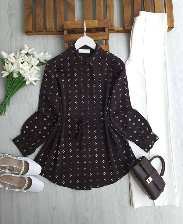 KULFE DESENLİ BELİ İPLİ SALAŞ GÖMLEK TUNİK A6-6-5704-37-KAHVE