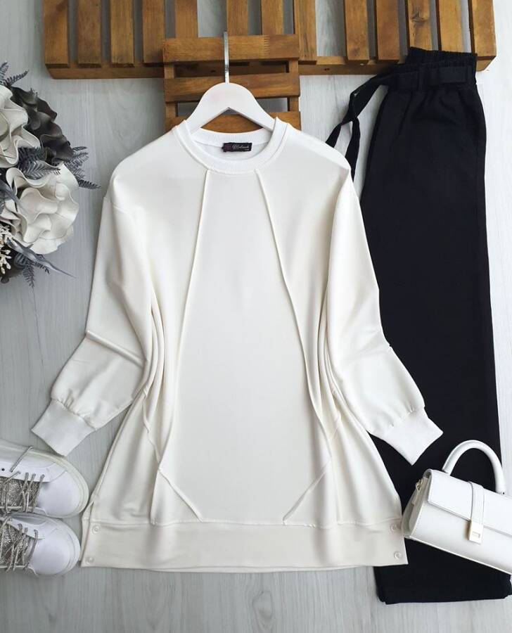 KUNFA DÜĞME DETAYLI ÇİMALI SALAŞ TUNİK A3-4-5621-20-BEYAZ