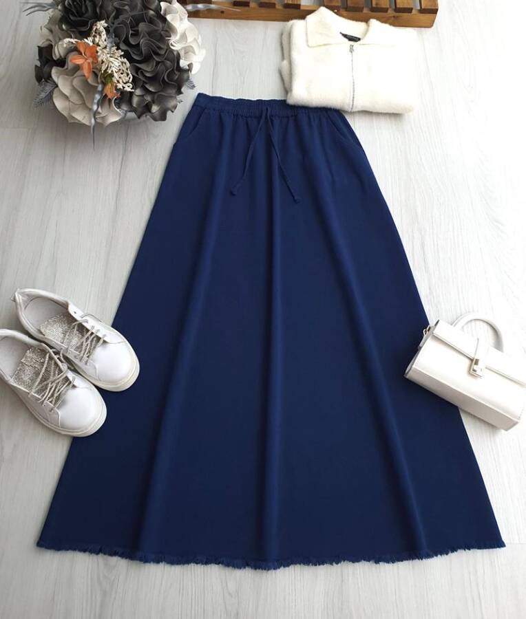 KUSLA PÜSKÜLLÜ CEPLİ BELİ LASTİKLİ GABARDİN ETEK 6079-11-İNDİGO