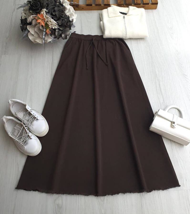 KUSLA PÜSKÜLLÜ CEPLİ BELİ LASTİKLİ GABARDİN ETEK B9-2-6079-37-KAHVE