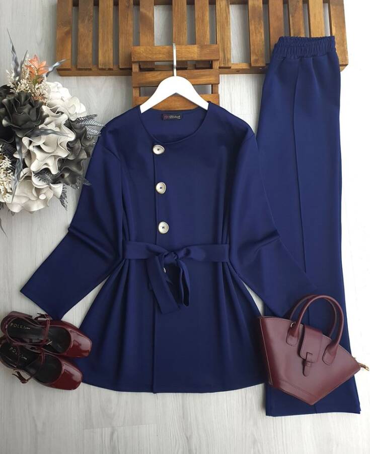 LANEC YAN DÜĞMELİ BELİ İPLİ İKİLİ TAKIM 1702-12-LACİVERT