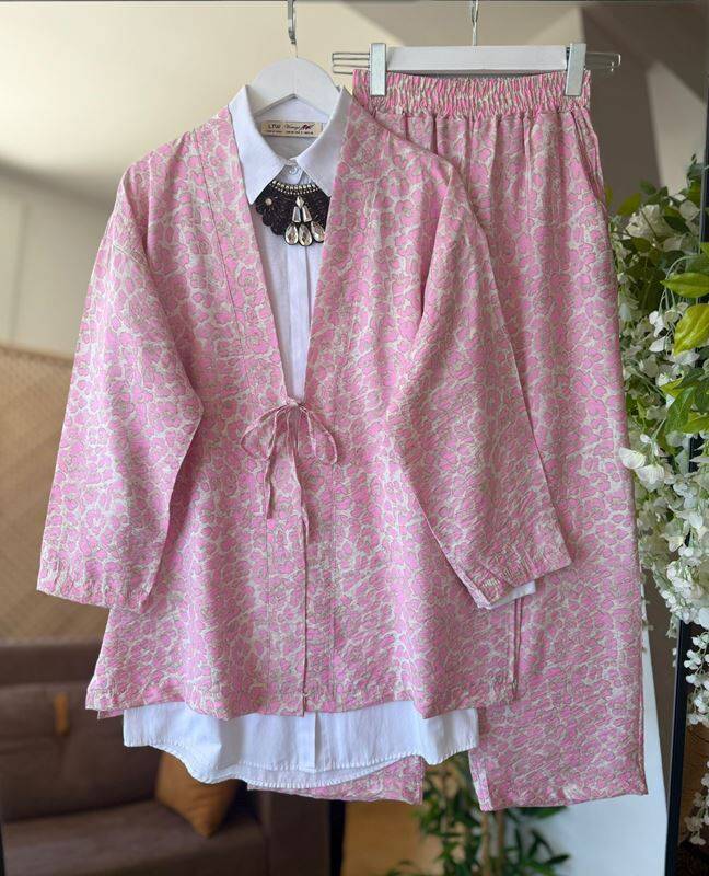 LAPLE ÖNÜ BAĞCIKLI KİMONO PANTOLON İKİLİ TAKIM A9-2-1640-16-GÜL