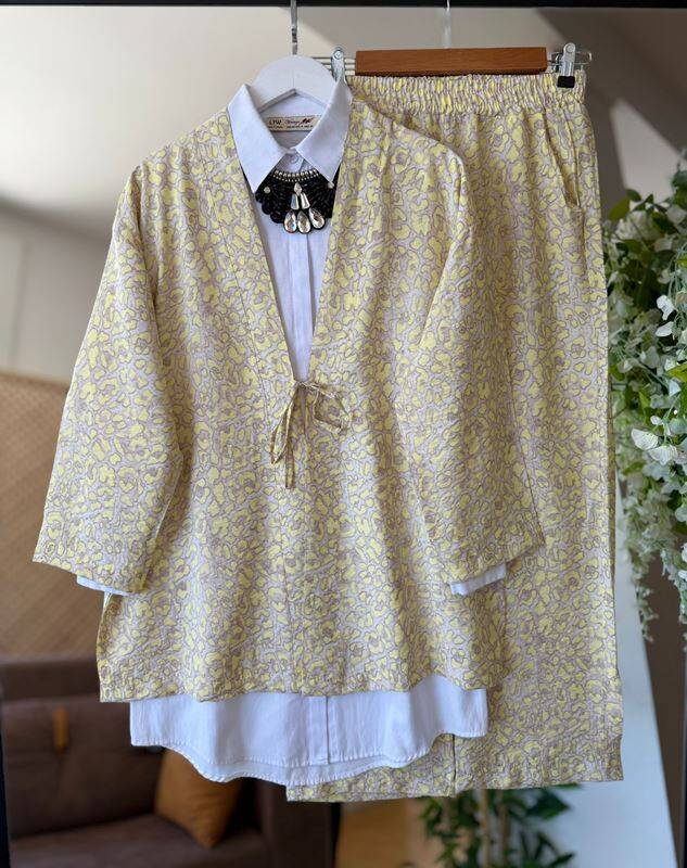 LAPLE ÖNÜ BAĞCIKLI KİMONO PANTOLON İKİLİ TAKIM A9-2-1640-23-SARI
