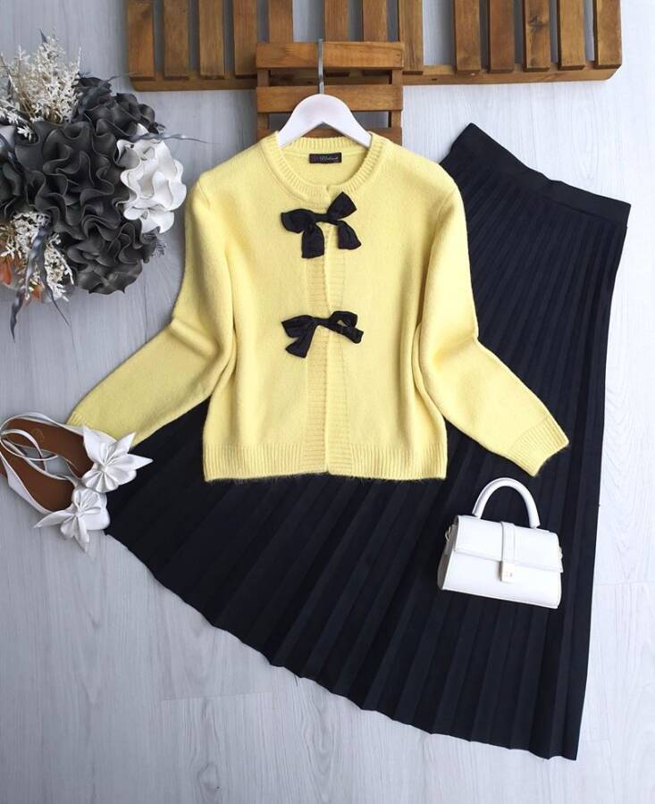 LARGA ÖNÜ AÇIK FİYONKLU HIRKA A8-1-8159-23-SARI