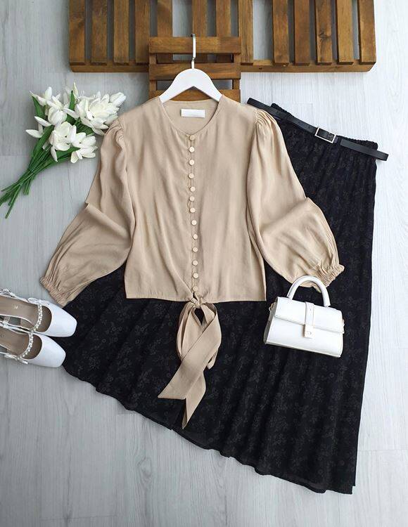 LAVESA SIRALI DÜĞME ÖNÜ BAĞLAMALI GÖMLEK B1-3 5674-34-BEJ