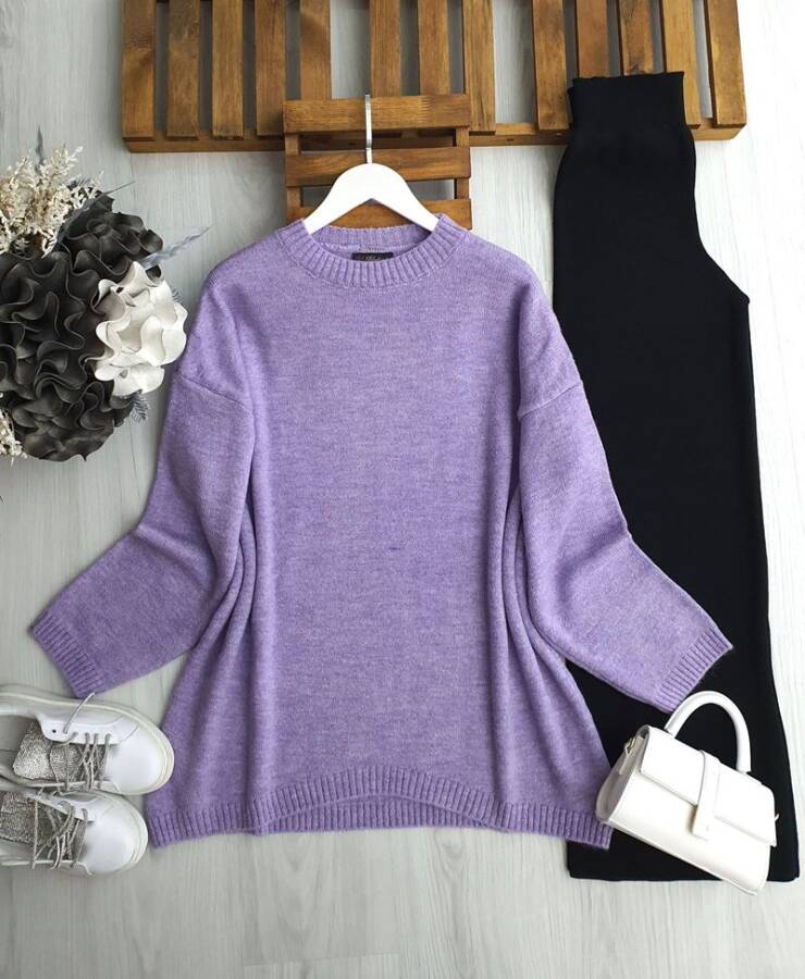 LAYDE ÖNÜ OVAL SALAŞ ŞARDONLU TUNİK 8199-32-LİLA