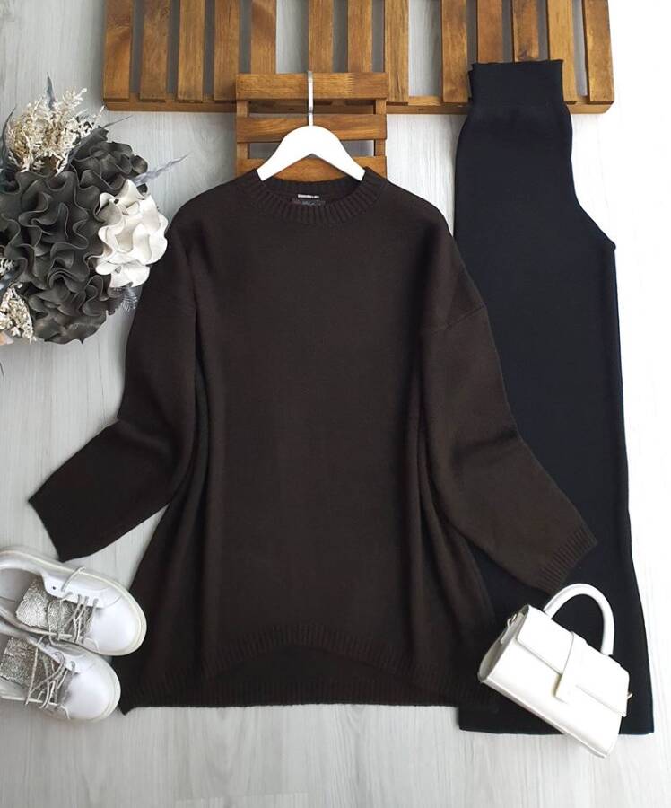 LAYDE ÖNÜ OVAL SALAŞ ŞARDONLU TUNİK 8199-37-KAHVE