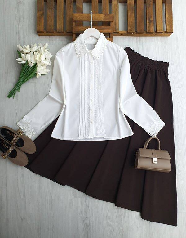 LAYP DANTEL YAKA VE KOL GÖMLEK 5719-20-BEYAZ
