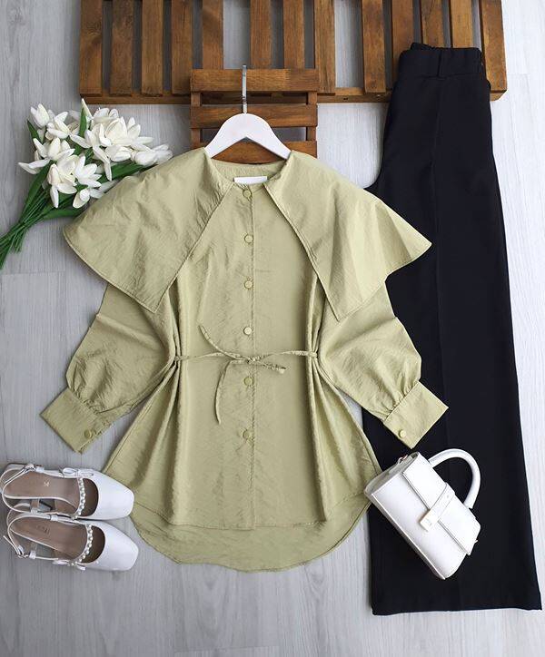 LENFE OMUZ PELERİN LOTUS GÖMLEK TUNİK 5681-07-YEŞİL