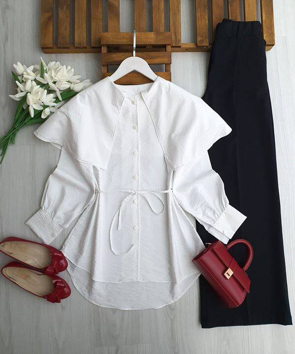 LENFE OMUZ PELERİN LOTUS GÖMLEK TUNİK 5681-20-BEYAZ