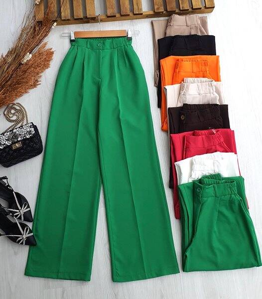 LERSE BELİ LASTİKLİ BOL PAÇA PANTOLON B7-3-2-23265-07-YEŞİL