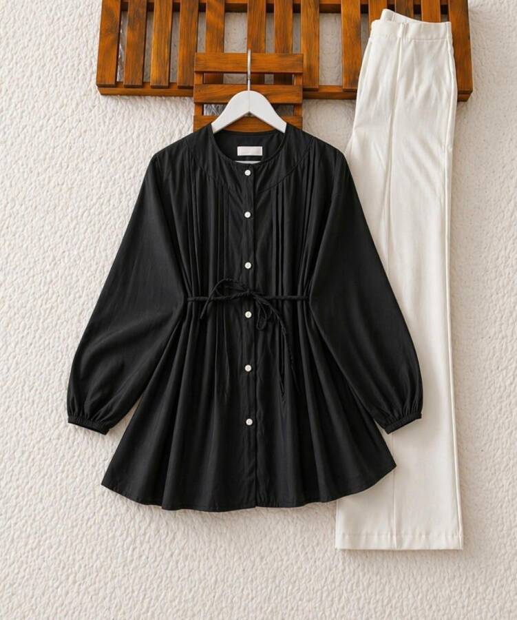 LİSN NERVÜR DİKİŞ DETAYLI SALAŞ GÖMLEK TUNİK 5735-01-SİYAH