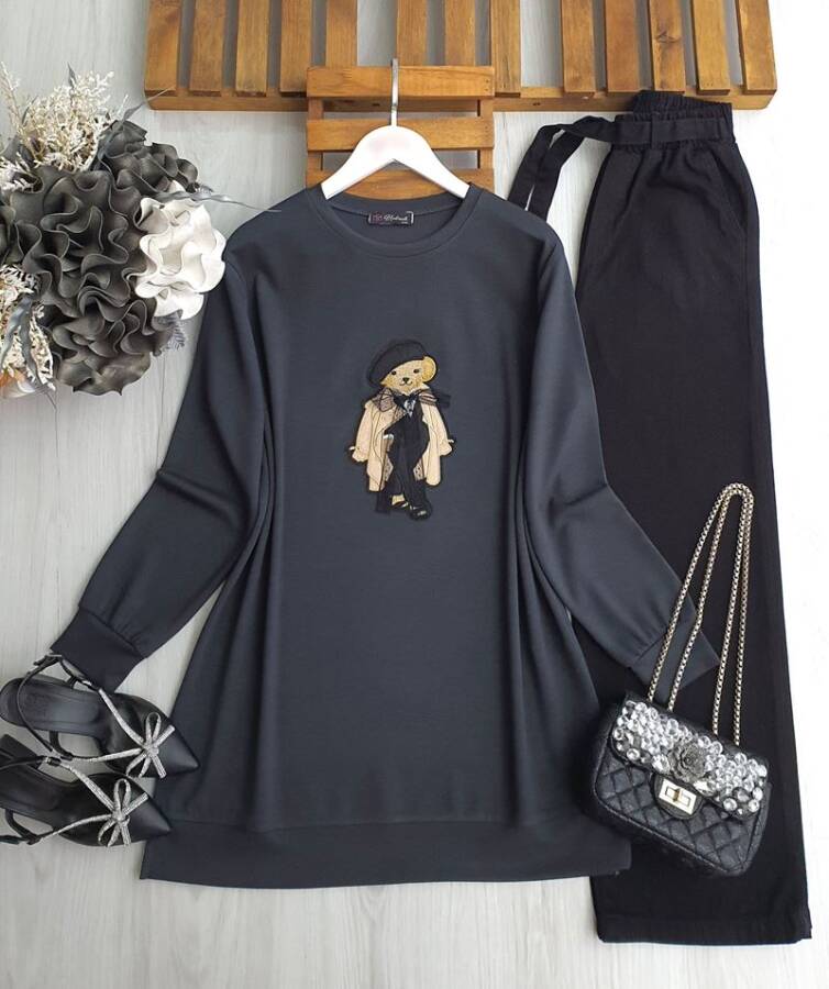 LOBAN ÖNÜ CEKETLİ AYI TUNİK 5640-58-FÜME