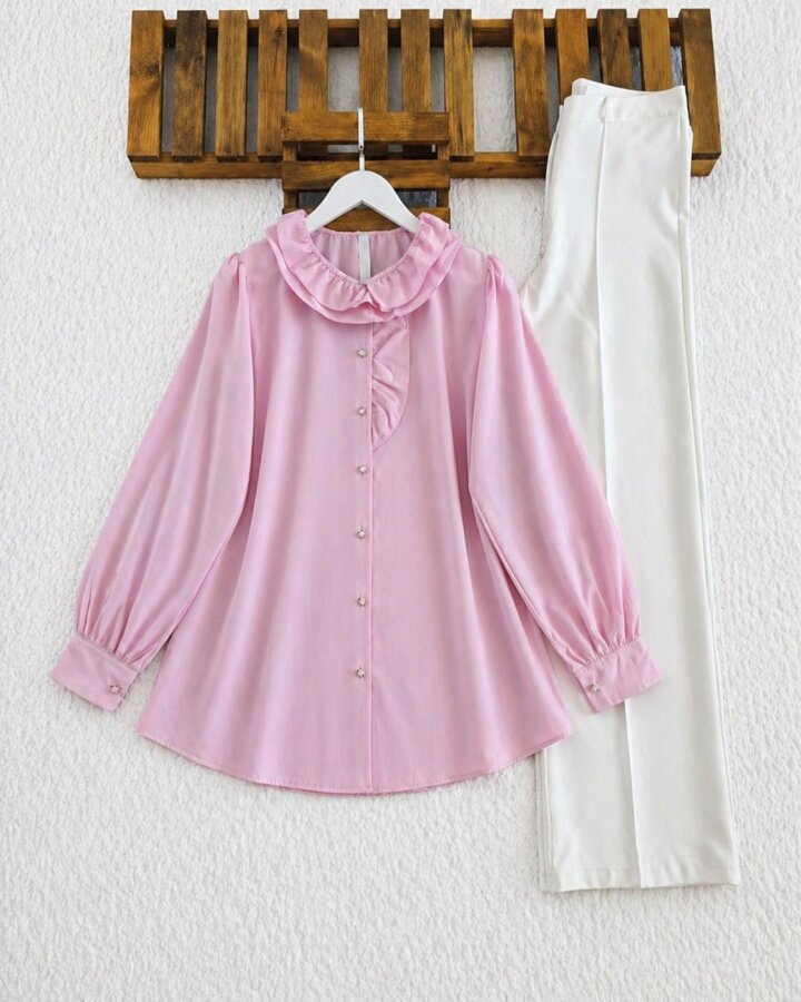 LOES YAKA FIRFIRLI GÖMLEK TUNİK B5-2-5687-05-PUDRA