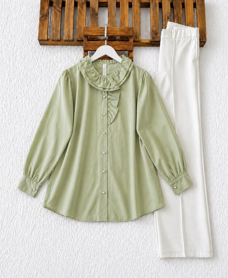 LOES YAKA FIRFIRLI GÖMLEK TUNİK B5-2-5687-07-YEŞİL