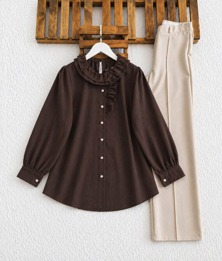 LOES YAKA FIRFIRLI GÖMLEK TUNİK B5-2-5687-37-KAHVE