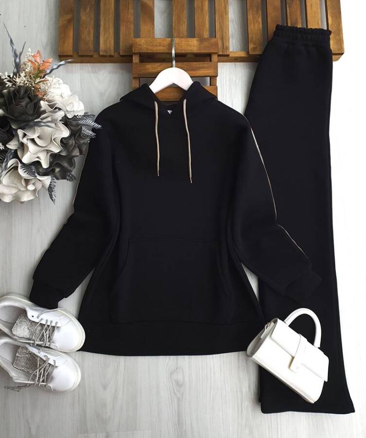 LOGLA OMUZDAN KOLA ŞERİTLİ ÜÇ İPLİK TAKIM B10-2-1697-01-SİYAH