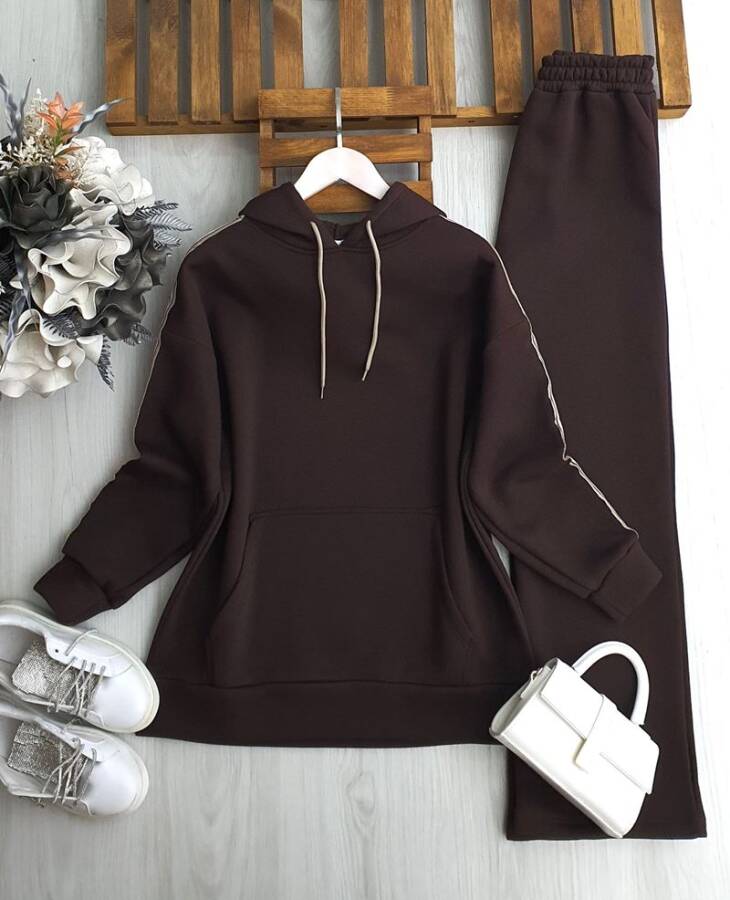 LOGLA OMUZDAN KOLA ŞERİTLİ ÜÇ İPLİK TAKIM B10-2-1697-37-KAHVE