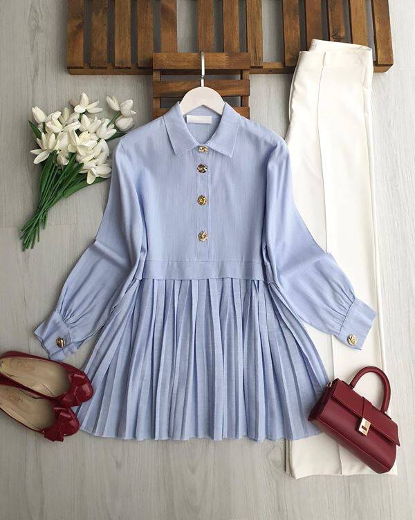 LOMOZ PİLİSELİ YARIM DÜĞMELİ KETEN TUNİK B4-4-5698-10-MAVİ