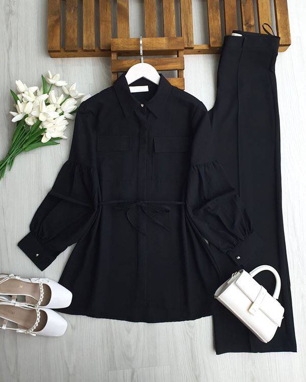 LONEH ÇİFT CEP GİZLİ PATLI GÖMLEK TUNİK B4-2-5666-01-SİYAH