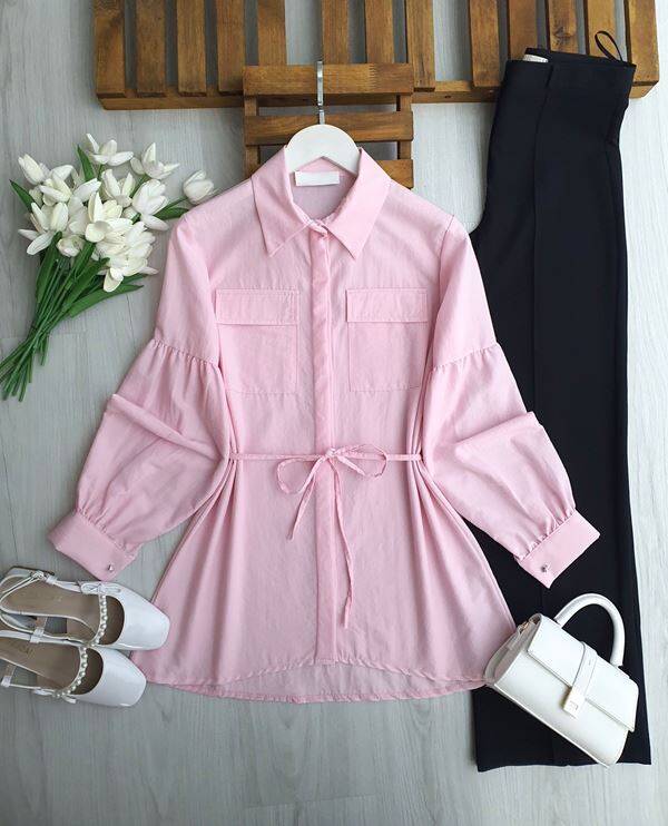 LONEH ÇİFT CEP GİZLİ PATLI GÖMLEK TUNİK B4-2-5666-05-PUDRA