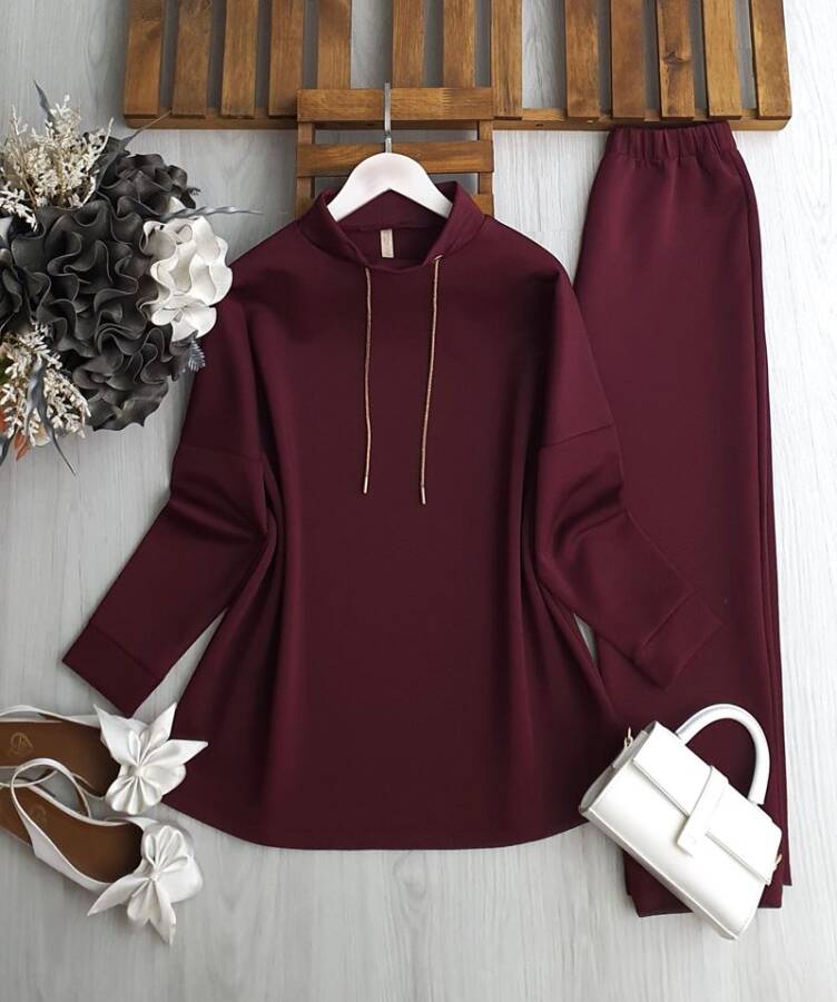 LOVDE YÜKSEK YAKA ZİNCİR BAĞCIK İKİLİ TAKIM A6-3-1693-04-BORDO