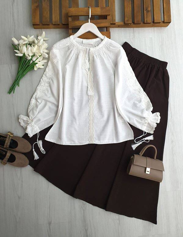 LQWE NAKIŞLI PÜSKÜL BAĞCIKLI BALON KOL ÖNÜ GÜPÜRLÜ GÖMLEK 5727-20-BEYAZ