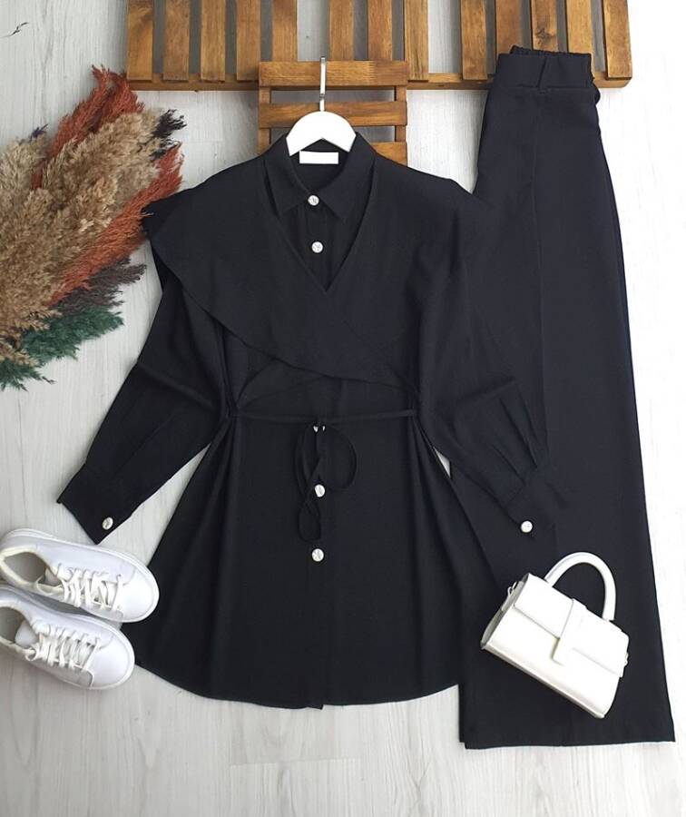 LUBAZ OMUZU ŞALLI BELİ İPLİ KETEN TUNİK A3-5-5683-01-SİYAH