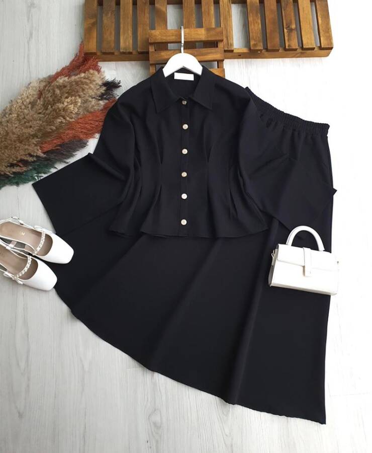 LUCA BEL OTURTMA DİKİŞLİ METAL DÜĞMELİ ETEKLİ TAKIM B4-1-1705-01-SİYAH
