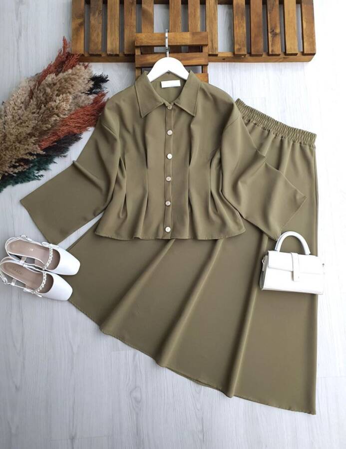 LUCA BEL OTURTMA DİKİŞLİ METAL DÜĞMELİ ETEKLİ TAKIM B4-1-1705-09-HAKİ