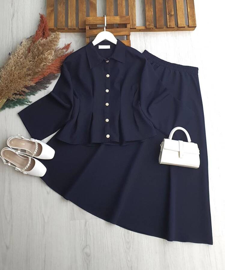 LUCA BEL OTURTMA DİKİŞLİ METAL DÜĞMELİ ETEKLİ TAKIM B4-1-1705-12-LACİVERT