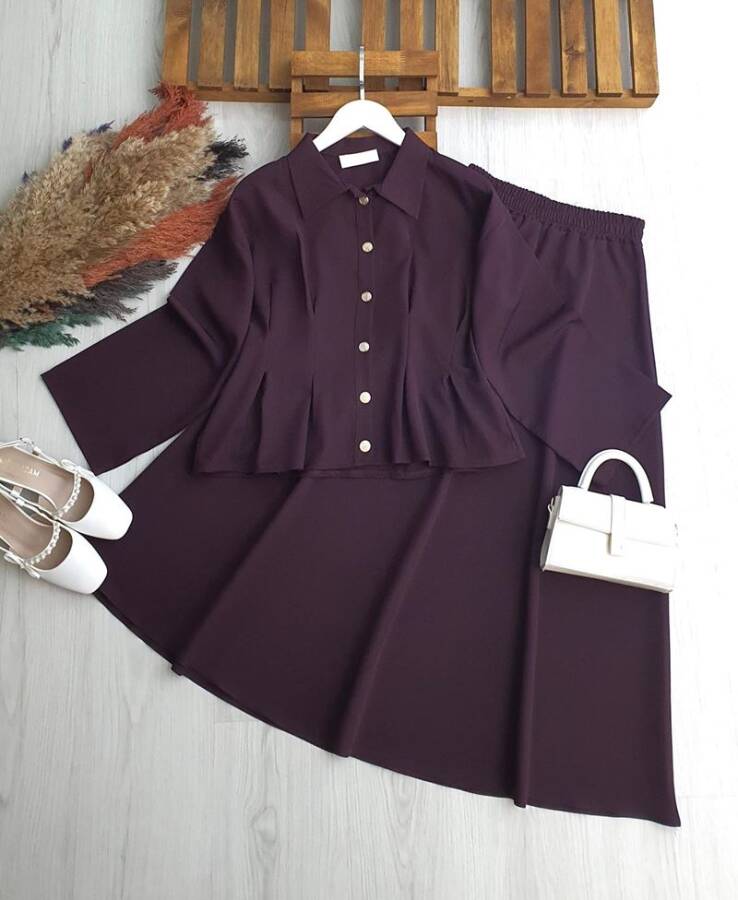 LUCA BEL OTURTMA DİKİŞLİ METAL DÜĞMELİ ETEKLİ TAKIM B4-3-1705-18-MÜRDÜM