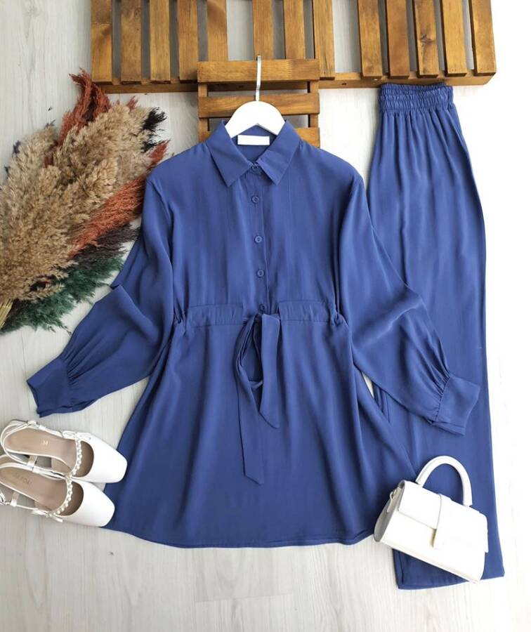 LUCES YARIM DÜĞMELİ BELİ BAĞCIKLI CUPRA İKİLİ TAKIM 1710-11-İNDİGO