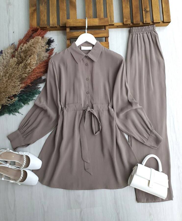 LUCES YARIM DÜĞMELİ BELİ BAĞCIKLI CUPRA İKİLİ TAKIM 1710-25-VİZON