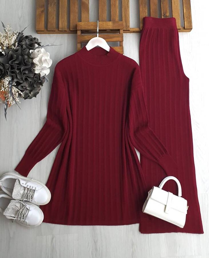 LUDE KALIN ÇİZGİLİ TRİKO TAKIM A5-4-8168-04-BORDO