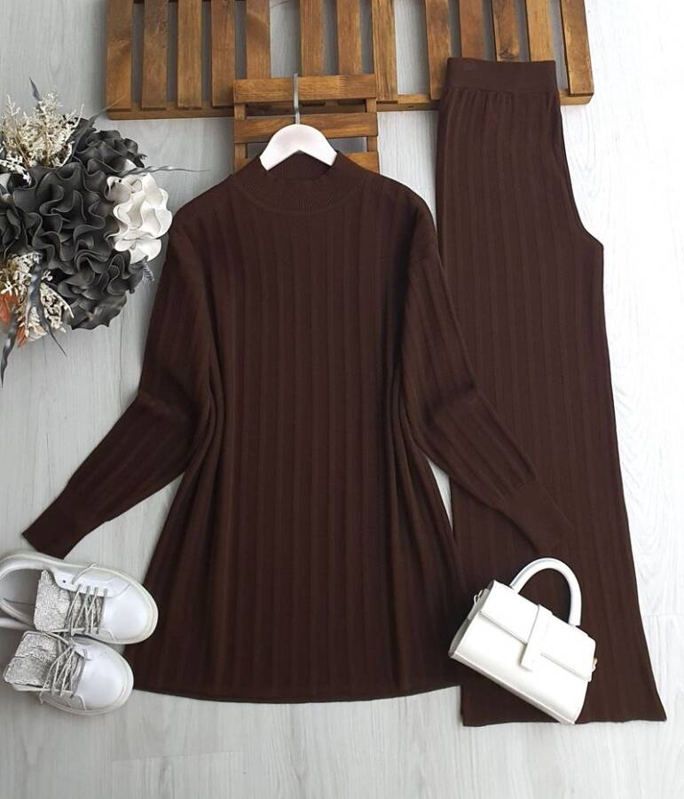 LUDE KALIN ÇİZGİLİ TRİKO TAKIM A5-4-8168-37-KAHVE