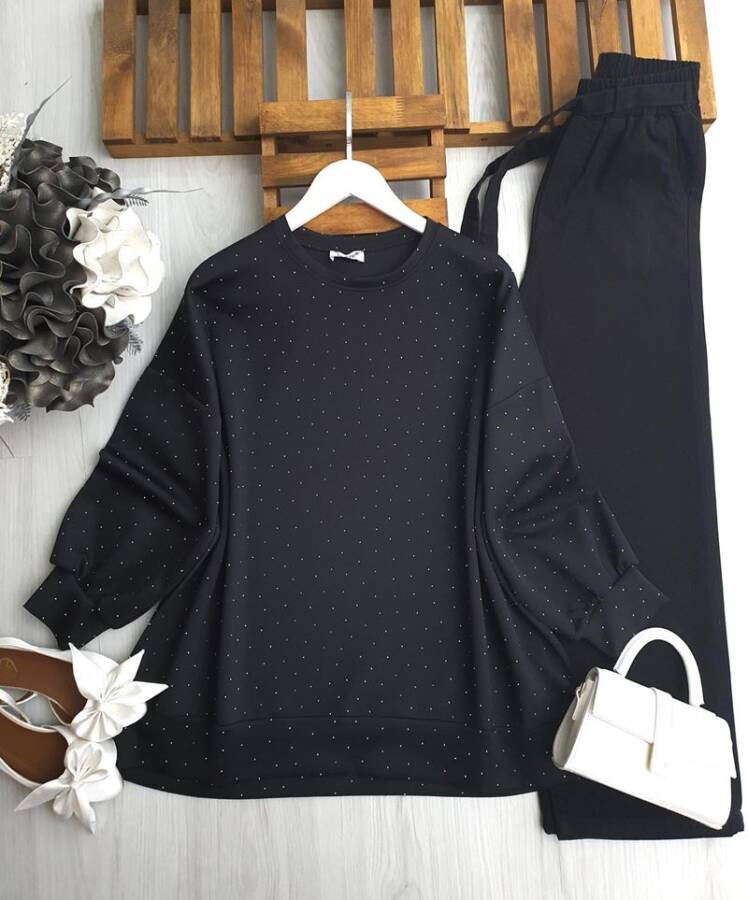 LUGSA KOMPLE TAŞLI OVERSİZE TUNİK C2-5618-01-SİYAH