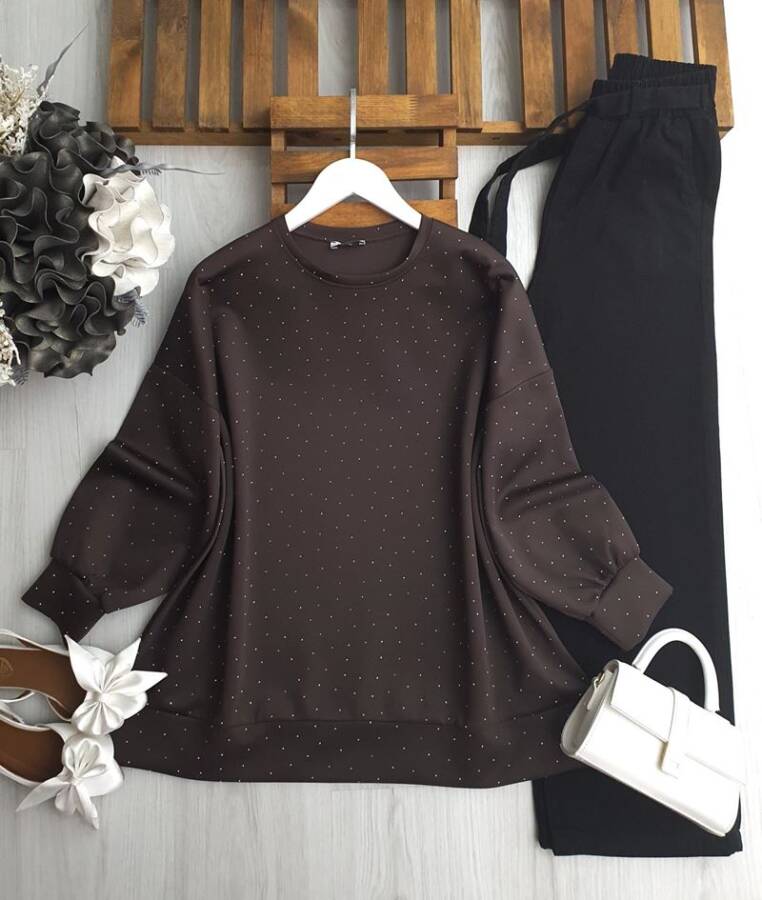 LUGSA KOMPLE TAŞLI OVERSİZE TUNİK C2-5618-37-KAHVE
