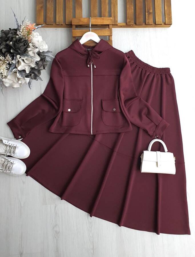 LUGSA OVAL CEPLİ PANEL ŞERİTLİ FERMUARLI ETEKLİ TAKIM 1689-04-BORDO