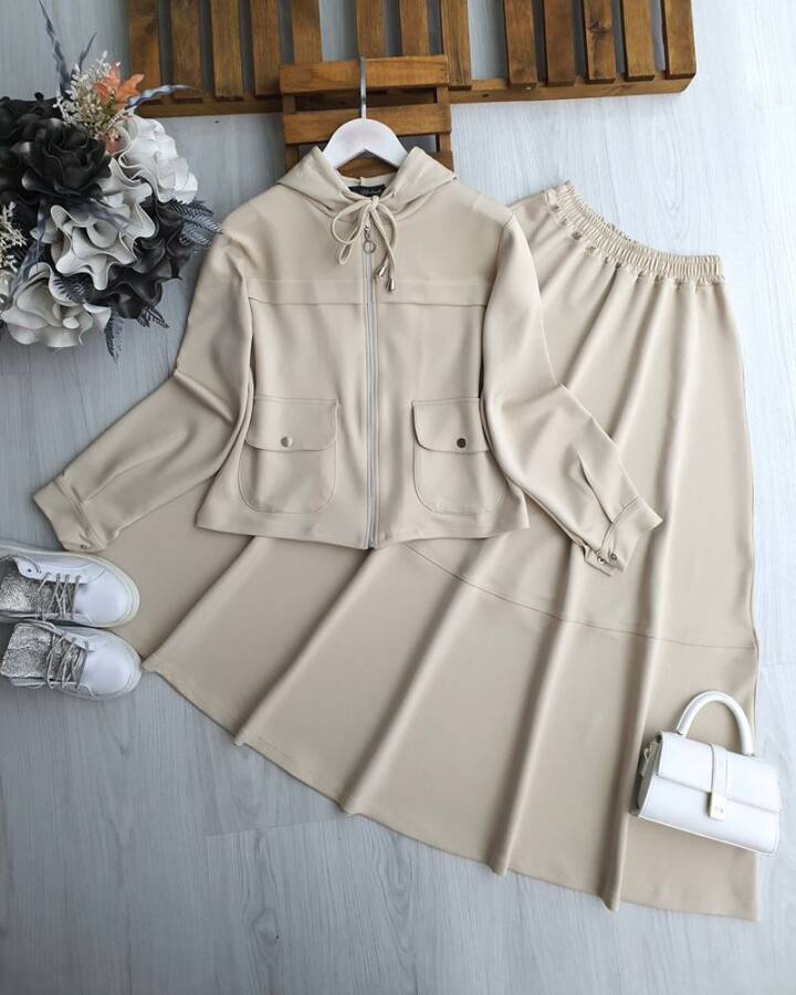 LUGSA OVAL CEPLİ PANEL ŞERİTLİ FERMUARLI ETEKLİ TAKIM 1689-34-BEJ