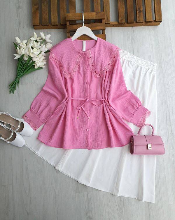 LUNGEH DANTEL BÜYÜK YAKA SALAŞ GÖMLEK B7-4-5700-05-PUDRA