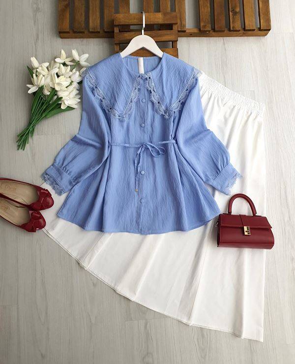 LUNGEH DANTEL BÜYÜK YAKA SALAŞ GÖMLEK B7-4-5700-10-MAVİ