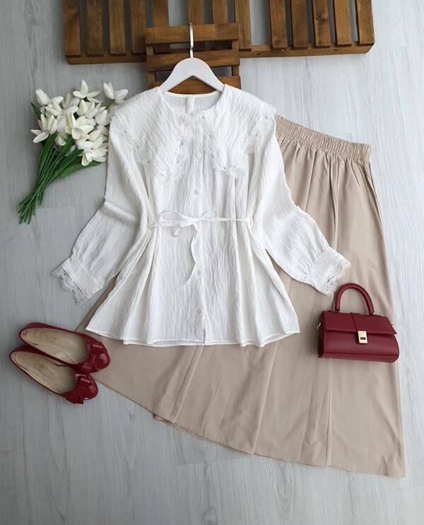 LUNGEH DANTEL BÜYÜK YAKA SALAŞ GÖMLEK B7-4-5700-20-BEYAZ