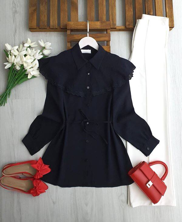 LUNSA DANTELLİ PELERİN YAKA SALAŞ GÖMLEK TUNİK B3-1-5701-01-SİYAH