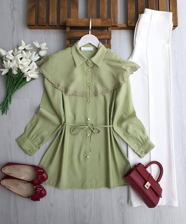 LUNSA DANTELLİ PELERİN YAKA SALAŞ GÖMLEK TUNİK B3-1-5701-07-YEŞİL