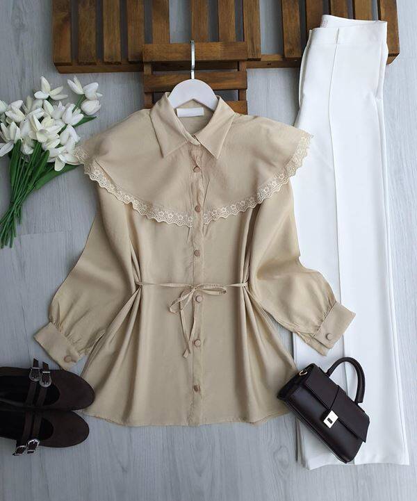 LUNSA DANTELLİ PELERİN YAKA SALAŞ GÖMLEK TUNİK B3-1-5701-34-BEJ