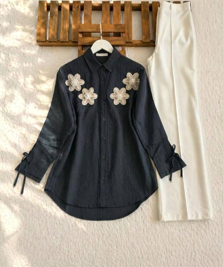 LUSEC ÇİÇEK AKSESUARLI KOL BAĞCIKLI GÖMLEK TUNİK B2-7-5734-01-SİYAH